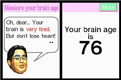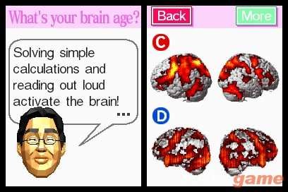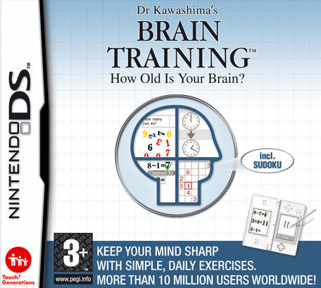 عصر الدماغ: تدريب دماغك في دقائق يوميًا لنينتندو دي إس هو شكل ممتع ومفيد من الترفيه يمكن للجميع الاستمتاع به، لأنه يساعد اللاعبين على استعراض عضلاتهم العقلية. لعبة Brain Age مستوحاة من بحث البروفيسور ريوتا كاواشيما، عالم الأعصاب الياباني البارز. قامت دراساته بتقييم تأثير أداء بعض القراءة والرياضياتتمارين جيم للمساعدة في تحفيز الدماغ. يقدم Brain Age أنشطة عقلية سريعة تساعد في الحفاظ على لياقة دماغك. تشمل الأنشطة حل المسائل الرياضية البسيطة بسرعة، وإحصاء الأشخاص الذين يدخلون ويخرجون من المنزل في وقت واحد، ورسم الصور على شاشة اللمس، وقراءة الأدب الكلاسيكي بصوت عالٍ، والمزيد. يمكنك أيضًا لعب سودوكو، وهي لعبة ألغاز الأرقام التي أصبحت ميزة شائعة للغاية في الصحف الأمريكية. في اليوم الأول من التمرين، ستخضع لسلسلة من الاختبارات وستحصل على درجة تحدد عمر دماغك. هذا الرقم يُسمى "عمر دماغك DS". من خلال أداء التمارين اليومية لمدة دقائق فقط يوميًا على مدار أسابيع وأشهر، كلما تحسنت في التمارين وتراجع عمر DS Brain Age لديك.
