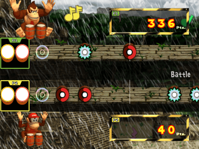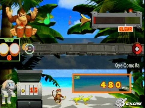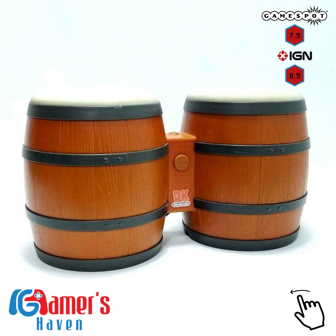 Join Donkey and Diddy Kong as they drum their way through both old and new hits. With the new DK Bongo drum controller, you can drum and clap through this musical adventure. The game features songs that range from kids' medleys to classical and pop music. Connect up to four DK Bongo controllers for single-player jam sessions or multiplayer matches. Only you can help Donkey and Diddy realize their dream of becoming famous, earning money, and buying all the bananas they could ever want.
