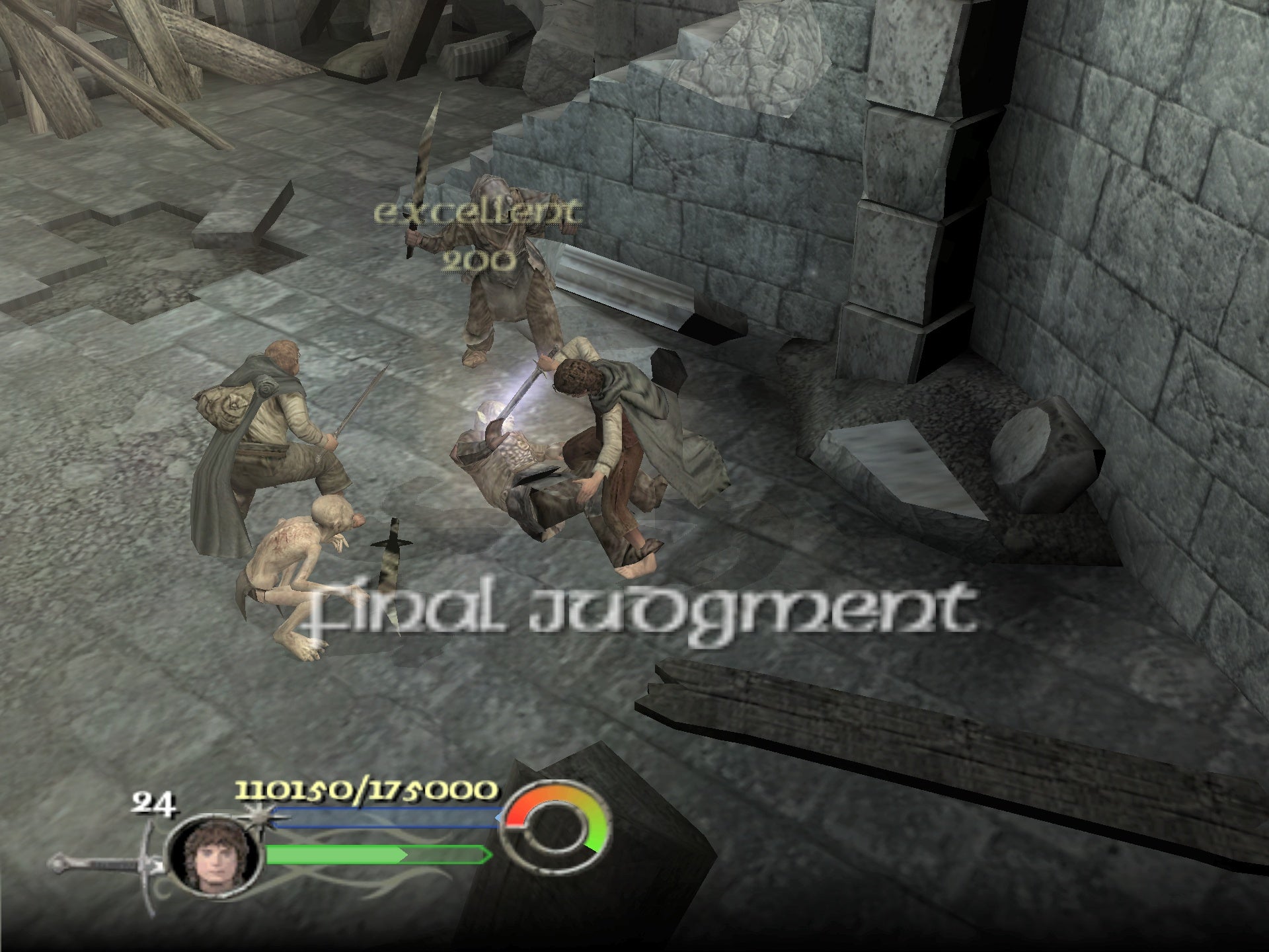 The game's story begins with Frodo Baggins and Samwise Gamgee, the two hobbits who carry the One Ring, journeying through the treacherous lands of Mordor to Mount Doom. Along the way, they encounter various dangers, including enemy patrols and the relentless pursuit of the Ringwraiths. Meanwhile, Aragorn, Legolas, Gimli, and other members of the Fellowship lead an army of men, elves, and dwarves in a desperate bid to distract Sauron's forces and give Frodo a chance to destroy the Ring.