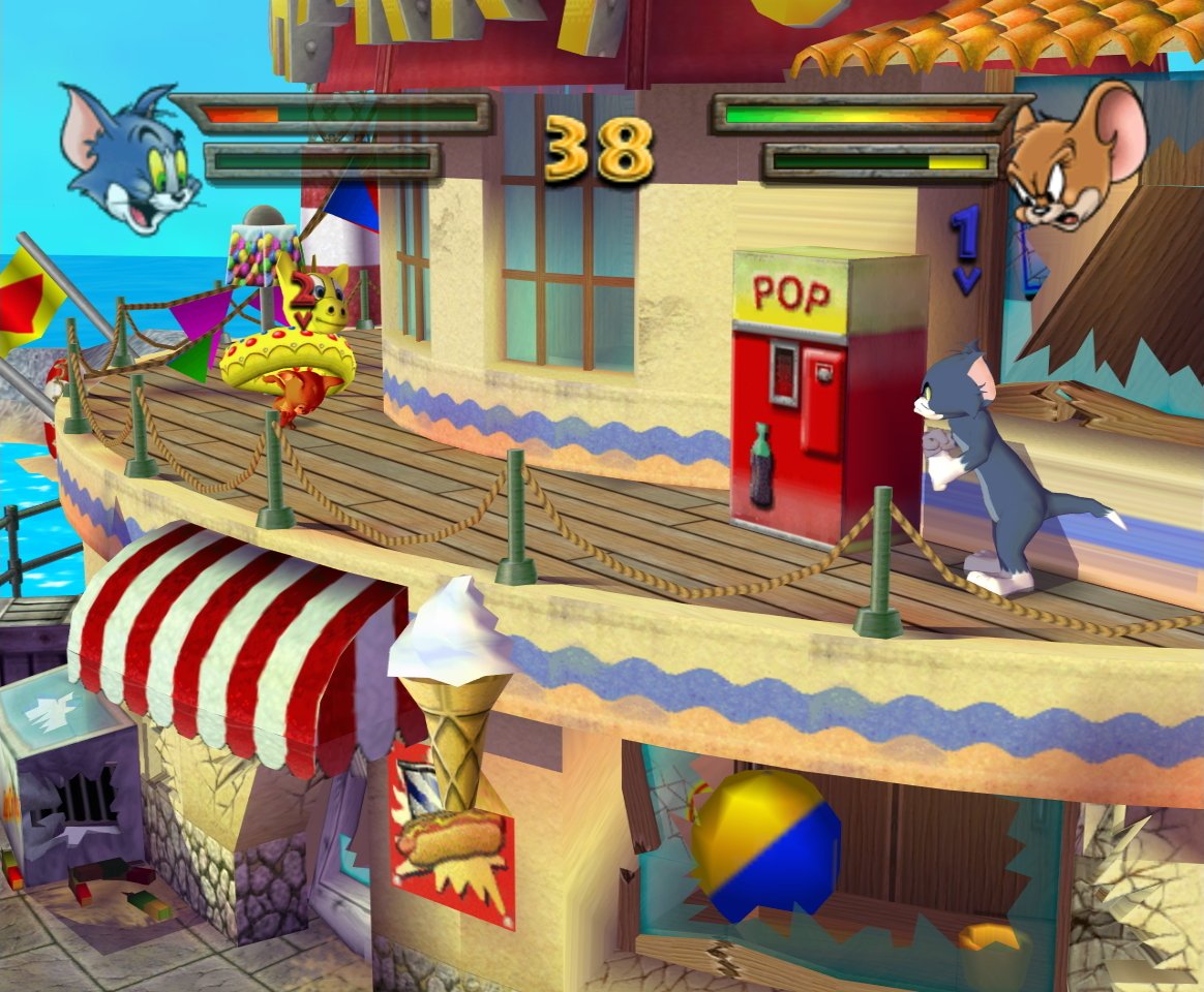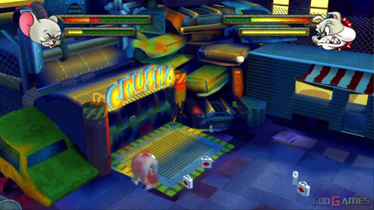 Throw a cat, mouse, and more than 75 weapons in the same room and you're sure to have a war. Tom & Jerry: War of the Whiskers lets you choose from nine different characters, including Jerry the mouse and his feline nemesis Tom. You then duke it out in 11 destructible environments--battlefields which range from a twisted laboratory to an unstable construction site. Each character has their own strengths, weaknesses, and moves, but skillful use of weaponry can quickly turn a match in one's favor.