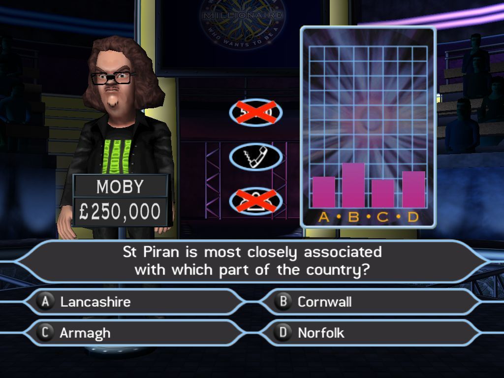 Who Wants to Be a Millionaire: Party Edition is a Miscellaneous game, developed by Climax Solent and published by Eidos Interactive, which was released in Europe in 2006.
